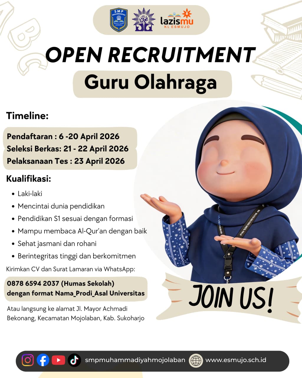 SMP MUHAMMADIYAH MOJOLABANPosisi: Guru Olahraga.Timeline: Pendaftaran ...