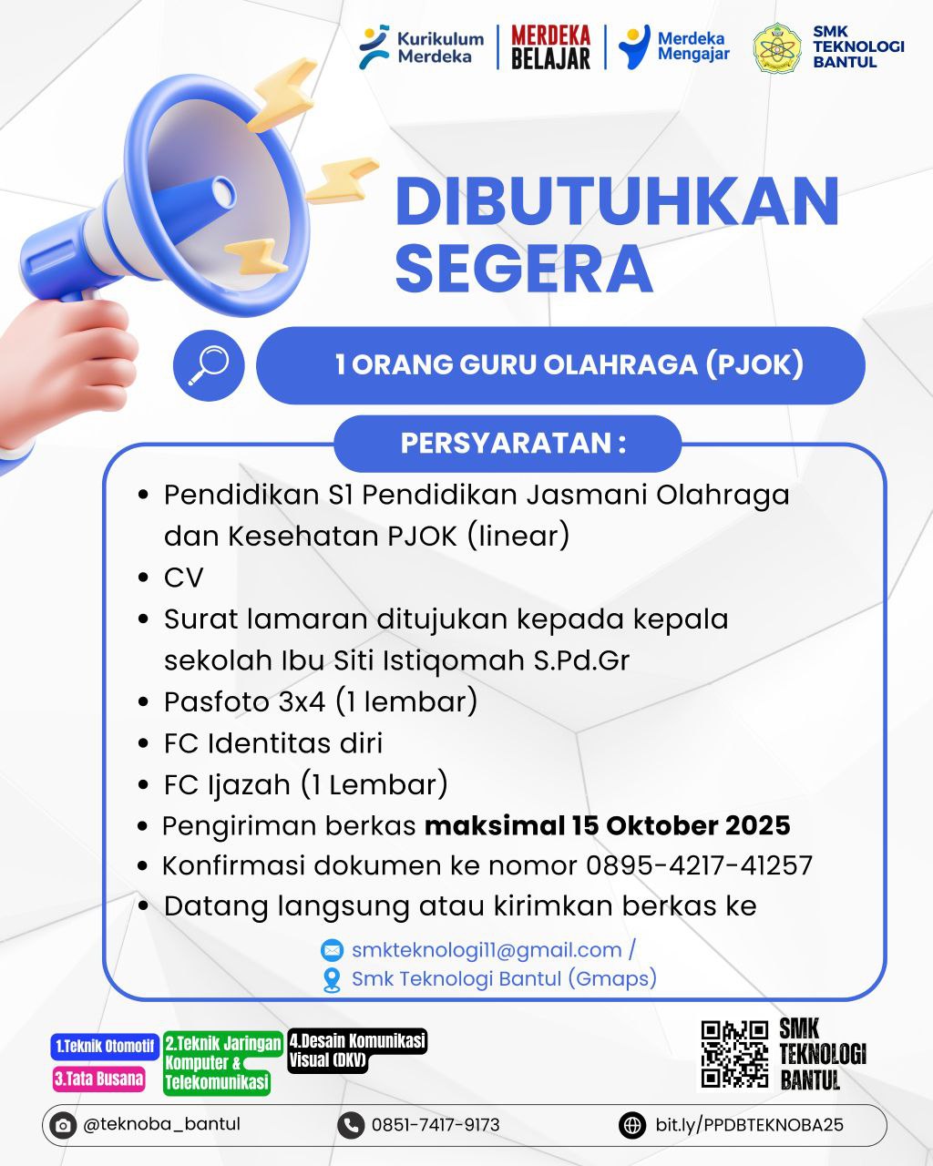 SMK Teknologi Bantul sedang membuka lowongan pekerjaan untuk 1 orang G...