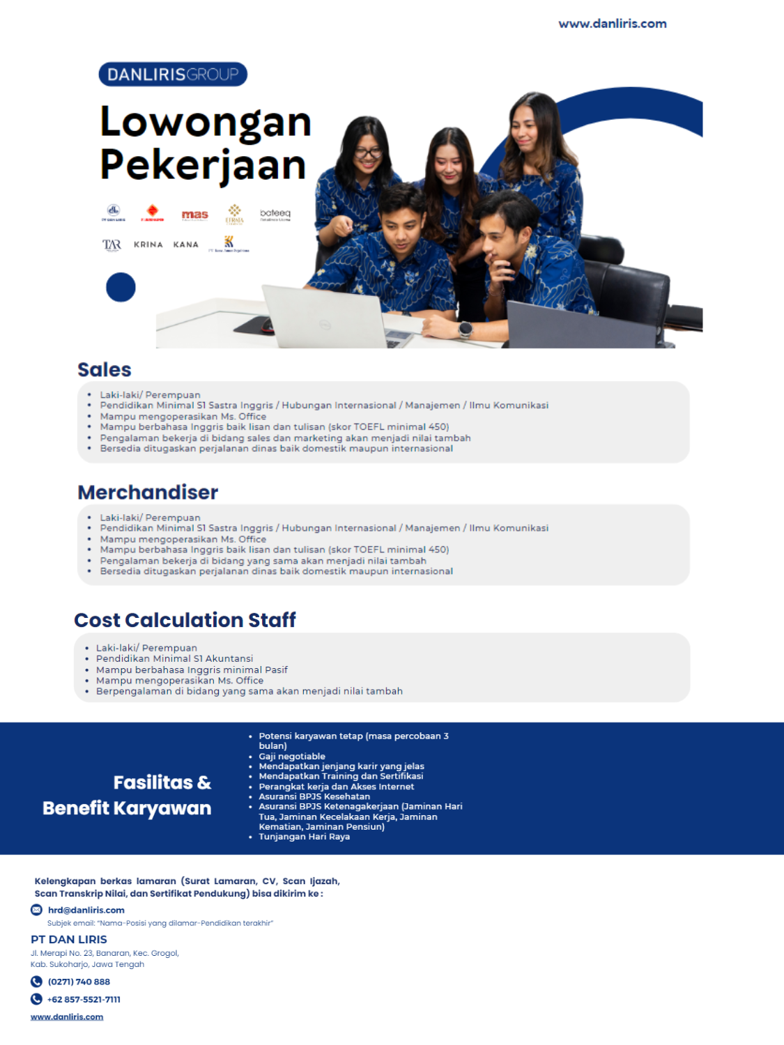 1. SalesLaki-laki/PerempuanPendidikan Minimal S1 Sastra Inggris/Hubungan Internasional/Manajemen / I...