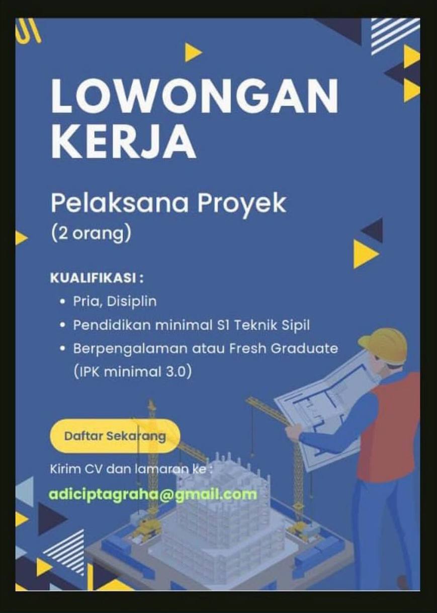 kirim CV dan Surat Lamaran ke: anjar_firstyantika@purakabangun.co.id...